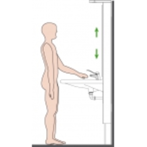 The Granberg Basicline 406-Height Adjustable Washbasin Bracket Lift System-with GASLIFT which is manually adjusted. The bracket is designed for use in a seated or standing position to improve accessibility and usability. FUNCTIONALITY- It provides easy and direct access in a seated position, compared to side access with a standard, non-adjustable washbasin/vanity. This makes it easier, safer, less stress and strain for users and/or carers. Designed for infrequent or occasional adjustment, individual or multiple users with varying abilities or equipment. AREAS OF USE: home, disabilities, group or supported accommodation, senior living, healthcare, education, workplace, commercial and community environments. SPECIFICATIONS: Width – 60cm Depth - 60 cm Maximum load overall - 40 kg for basin Height Adjustment - up to 19 cm (65 cm to 84 cm) INSTALLATION: Includes a safety system. Suitable for installation with a number of 28cm or 35cm wall washbasins. Mirrors or cabinets can be mounted above. Water is connected via a flexible waste plumbing system. For further information view www.inclusiveliving.com.au