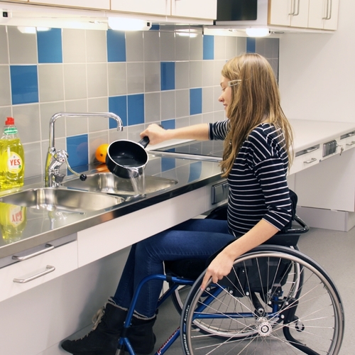 The Granberg Baselift 6200 is a wall mounted worktop lift, which moves up and down in a vertical motion at the touch of a button. It is intended for installation on a straight wall. A variety of appliances and sinks can be integrated into the bench surface. Caters for standing and seated users. Various sizes and configurations available.