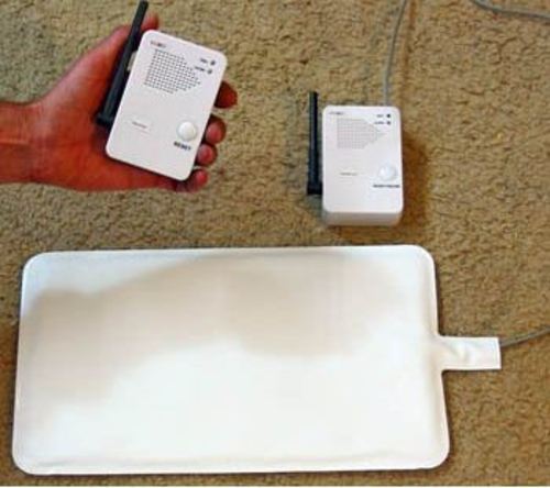 A sensor pad that is placed on the seat of a chair and connected to a transmitter. When an individual rises from the chair an alarm is triggered on the receiver to alert a carer/ nurse. The receiver has a range of 50 metres. Kit includes - Chair pad, transmitter, receiver, batteries and a power supply.