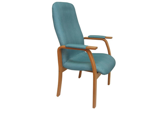 A range of fixed height,wooden framed, upholstered chairs available in low, medium or high back styles. The medium and high back chairs have arm pads with wooden hand grips on the end. Seat height can be customised. Available in a range of fabrics and stains.