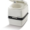 A height adjustable commode with wash and dry bidet functions It is made from plastic and plastic coated steel. The commode has two transport wheels, but is stable once in desired position. For operation, the commode needs to be plugged into mains power and the water reservoir filled. The controls are mounted on the side of the bidet unit. The waste is collected in a potty, which has a secure lid, or within an absorbent liner bag.