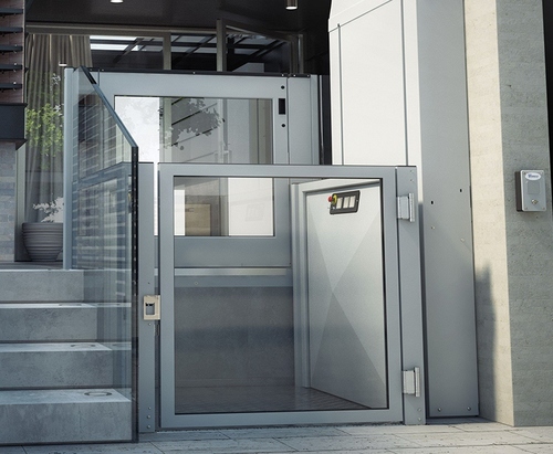 An electrically operated free standing platform lift designed for vertical rises of up to two metres. Suitable for outdoor installation. Available to a wide range of projects and buildings from aged care facilities, to schools, and private homes. No pit or separate machine room is required for installation. Complies with Australian Standard 1735.14/15 for limited mobility platform lifts.