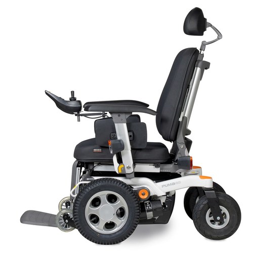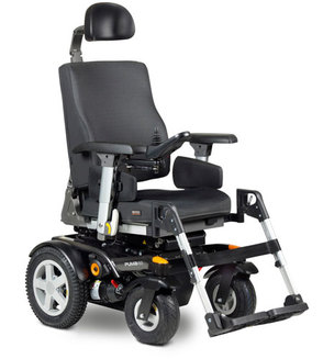 A rear wheeled power wheelchair with a rigid steel frame. It is designed for indoor and outdoor use and is suitable for adults. A range of powered options are available, including tilt and recline. The wheelchairs are available in a range of models and styles and can be customised. This chair is also available as a Front Wheel Drive