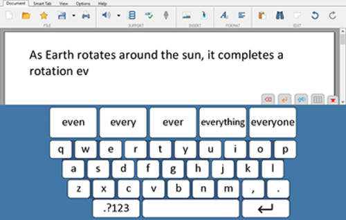 DocsPlus is a writing software from Crick Software, designed to help older learners (secondary school) learn to write and engage with the curriculum. It includes text prediction, a document reader, tools for organising and planning written work and subject specific vocabularies. It offers speech feedback to allow students to learn to proof-read their work independently by hearing it read back to them. DocsPlus is accessible via direct access, mouse, switch, eyegaze and offers high contrast visuals and larger buttons.