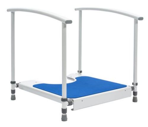 A toilet platform designed to enable children to sit on a range of different toilet heights with their feet comfortably supported on a smooth level surface. The height adjustable platform provides a step up and has a slip resistant surface for additional safety as well as non-slip rubber ferrule feet. Made from powder coated steel.