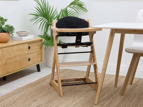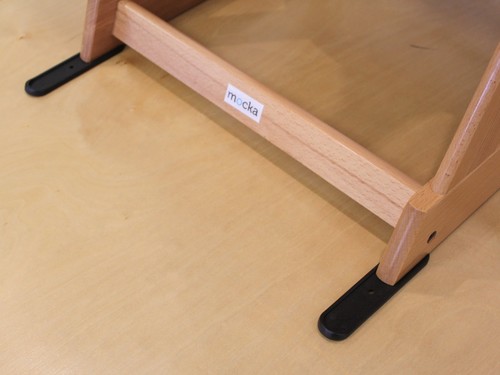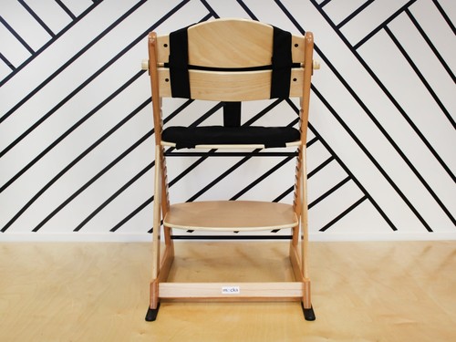 The Mocka Original Highchair comes with a set of seat cushions and a shoulder and waist harness, and safety strap between child's legs. It also includes leg extenders to use on the back of the highchair legs, these have an effect on reducing the centre of gravity.