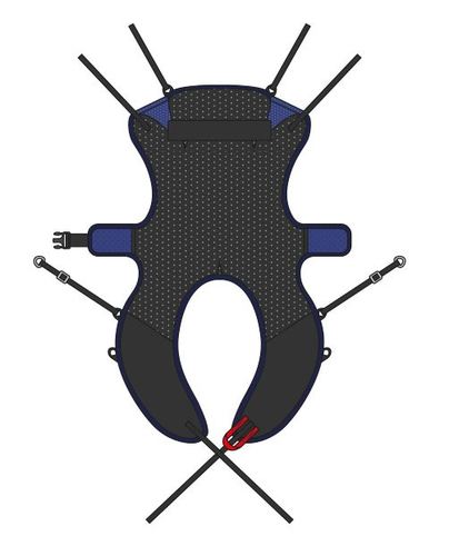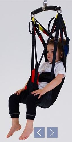 The Tinkham Sling is a full body sling designed specifically for persons who experience extensor tone, and those who have movements that may cause them to fall from the sling. Features include a buckle around the torso, and a padded neck roll. Available in choice of Polyester, Mesh or Silva Superfine Plus material and in paediatric or adult sizes (see Adult Silva Tinkham Sling).