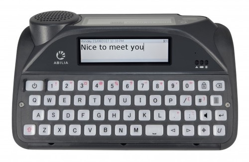 The LightWRITER SL50 is a communication device. It allows you to type your message and have it spoken aloud. There are inbuilt features to help make communication quicker such as word prediction and saved phrases. The LightWRITER SL50 has a screen for the user as well as a screen at the front of the device for communication partners to see. There are different keyguards available and the device can be mounted. It can also be used with switch scanning. The settings and keyboard layouts can be adjusted if needed.