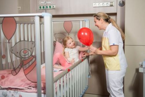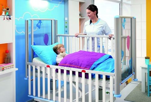 Open bars on the siderails for practical use in paediatric care.
