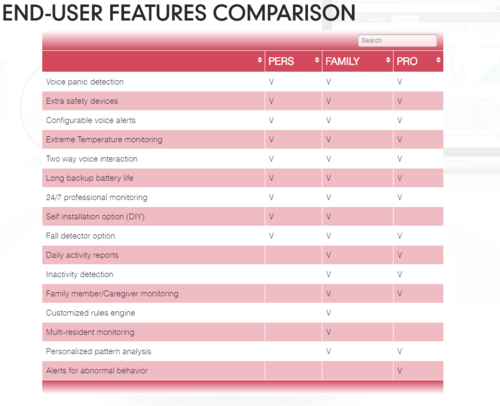 Enhanced Telecare Platform that comes in a choice of 3 packages(PERS+, Family, PRO). System can also be monitored or non-monitored (package dependant). Comes with an emergency alerting system that provides two-way communication as well as using artificial intelligence to provide smart monitoring wellness monitoring. Can also be voice activated through the use of a pre-programmed key phrase.