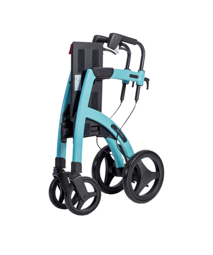 The Rollz Motion2 is a side folding, four wheeled walker that converts to a transit wheelchair. It has 12 inch rear wheels and 8 inch front wheels. It has a seat and cable style brakes. Three models are available - Standard, Small and Performance models. Standard is available in white, blue, black and purple.