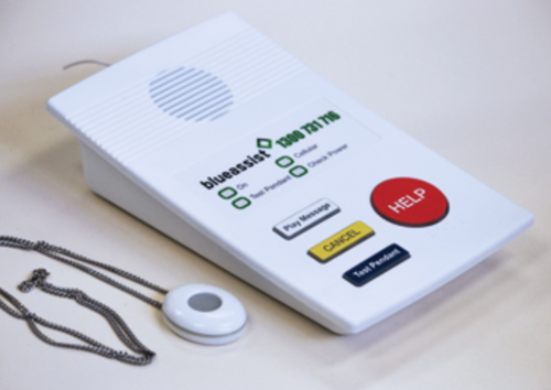 The Blueassist Home is a monitored personal alarm system with a small pendant and 3G connectivity. The speaker and microphone are located on the base unit, which must be plugged into mains power (however also has battery back-up for power outages). The pendant has up to 200m range from the base unit and is 'hot waterproof', therefore can be worn in the shower. Options such as falls detection, smoke detectors and a pendant that can operate in the wider community can be requested at the time of order, though will incur additional costs. Option for rental or purchase. If user has pacemaker, recommended to wear on wrist or belt, rather than lanyard.