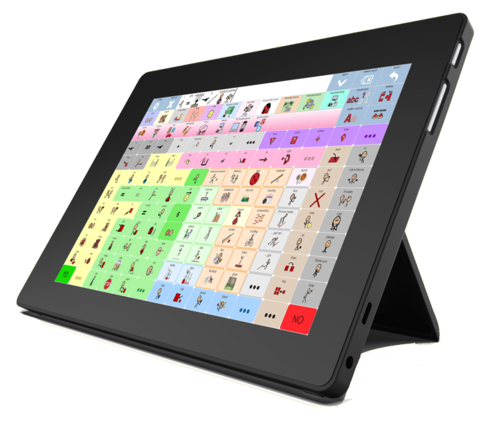 Vibe 10 is a dynamic display communication device with Mind Express 4 software with PODD or Score vocabularies. It features a 10 inch touchscreen display, rear text display, speakers and built in stand. It comes with a carry case, keyboard, AU power cable and a Rehadapt mount plate.