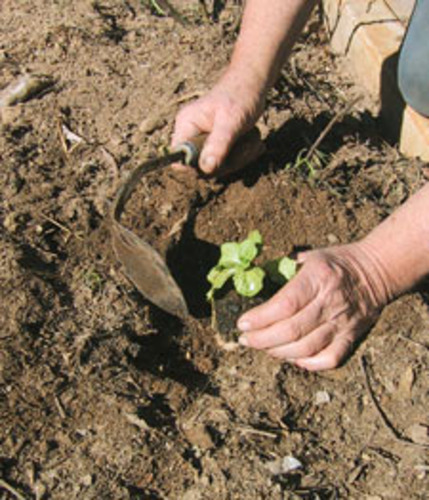 A hand forged, steel plough with a curved and pointed blade. Used for removing weeds, digging holes, transplanting bulbs/seedling and mini-ploughing of rows of vegetables, annuals, etc. The edge of the blade can level or mound the loose soil. Available with short handle. A Long Handled Ho-Mi Head Kit can be bought separate.