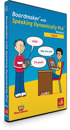 Boardmaker is a software program for making printed therapy materials, communication boards and books and overlays for speech generating devices. The program contains over 4500 PCS symbols and is available for both Macintosh and PC computers. Boardmaker Plus, Studio and Speaking Dynamically Pro support the development of interactive on screen communication resources, as well as communication pages with voice output.