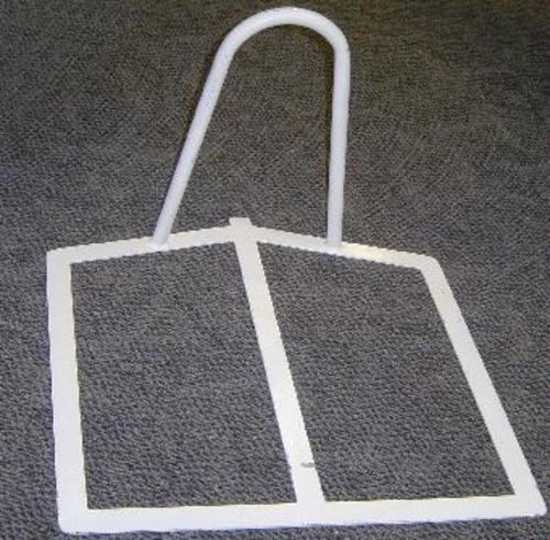 The base is made of heavy 40mm flat steel with a central support which extends beyond the hand grip for stability. The base is designed to slide under the mattress and rest on the floor.