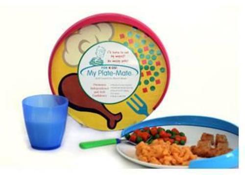 The plate guard is shaped to assist with loading of food onto cutlery. It can be adjusted to suit variations in plate size. My Plate Mate is suitable for children of two years of age and above. It is available in white, blue and pink. The plate guard is free of lead, BPA, phthalate, PVC, latex & polycarbonates.