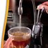 The InSinkErator provides steaming water for preparing tea, coffee, soups, or blanching vegetables. A tap is installed at the sink and the stainless steel tank sits in the cupboard under the sink.