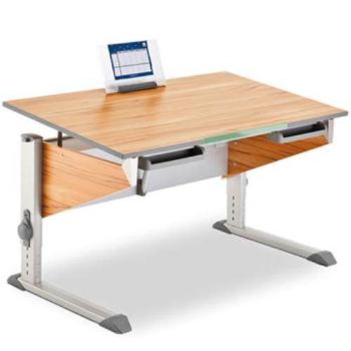 A range of childrens height adjustable desks. The height adjustment is mechanically operated by either a key string on the desk table or adjustable feet. Available in various models with a range of accessories.