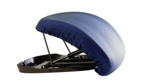 A lifting cushion powered by a gas spring. It is designed to give assistance when getting in and out of chair. It is portable and can be fitted to most chairs. It has a polyurethane cushion upholstered in polyester fabric. Two models are available depending on the weight of the user.