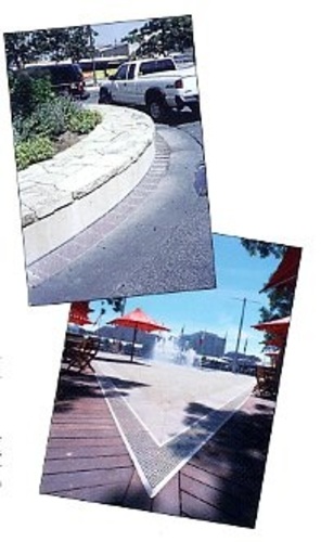 A reconstituted stone tactile ground surface indicator available in paver form. Available in formats for potential hazard indicator (raised dots) and direction of travel indicator (raised rows). A range of colours is available.