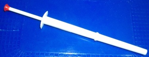 A plastic device consisting of of a thin cylinder with a plunger. When the plunger is depressed four thin wire claws protrude through the base. These open to clutch a pickle (or similar size object). It is designed to remove difficult to reach pickles from a jar.