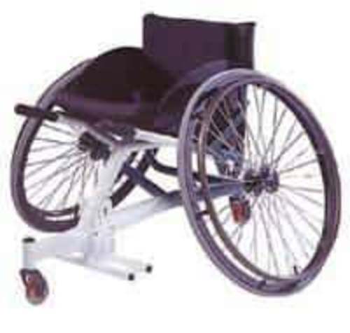 A rigid frame wheelchair for playing tennis which can be fully custom made. This wheelchair is made from aluminium or titanium and is built to the user specifications including size, rake and camber. It has fixed camber bars and adjustable back height, footplate length and wheel width. Available in adult or children size. It is only available with one castor.