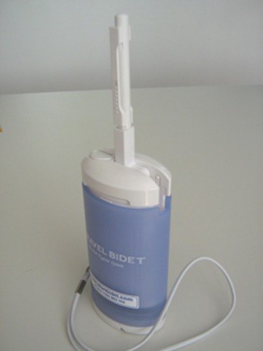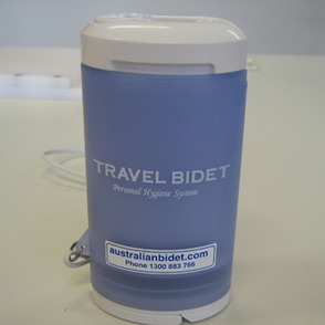 A battery operated compact and portable system for after toilet cleansing. It consists of a small plastic 180ml tank in which the inner part slides open to expose a folding nozzle. The tank is filled with warm water and, by pressing a button, the nozzle sprays the water where it is directed. There is a choice of three nozzles. The device has a wrist strap and carry bag. We recommend checking state or territory regulations before use of this product.