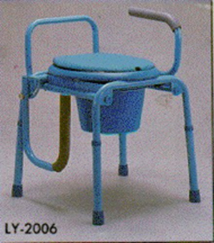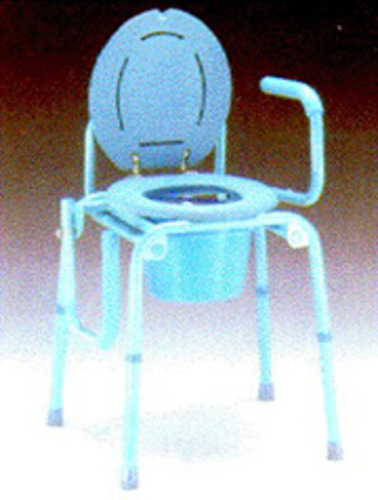 A sturdy height adjustable bedside commode or over toilet frame made from powder coated steel. It has dropside arms, a backrest and is suitable for use as a shower chair. It is designed to allow each arm support to drop down independently (by a simple lever release) to allow easier access when transferring from a bed or wheelchair.