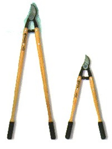 A range of garden loppers. Some with hickory wooden handles to reduce the weight of the product. The loppers have a slip resistant grip on each handle.