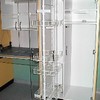 The shelves are on runners so that they can be pulled out of the cupboard. A rail runs around the edge of each shelf to prevent objects from falling off when it is being pulled out. The shelves have a 45kg capacity.