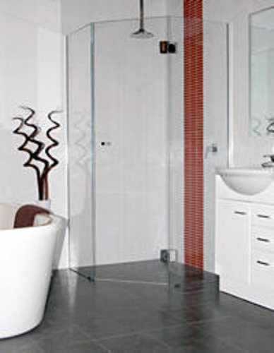 A range of shower curtain rails which attach to the ceiling or wall. May be customised. Two sizes of curtains are available in a variety of patterns. The curtains are available weighted with a stainless steel chain.