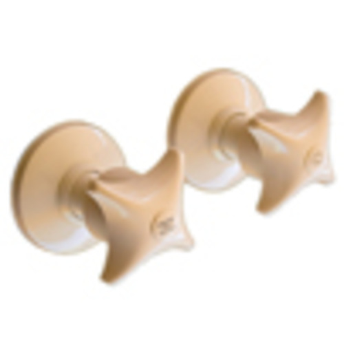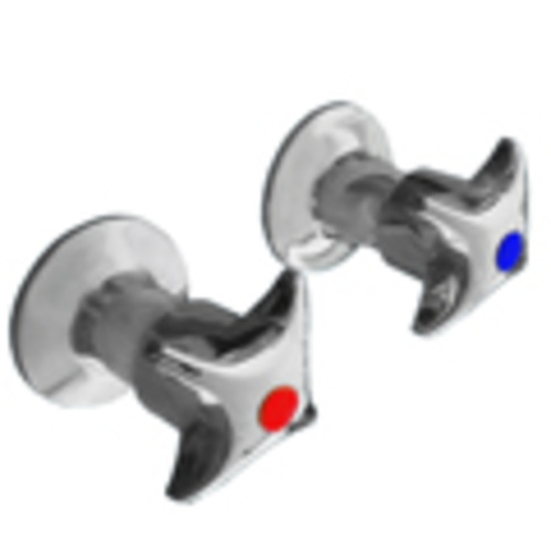 Available in a range of colours, including chrome, white and almond ivory. The central coloured button is available in red or blue for hot or cold taps.