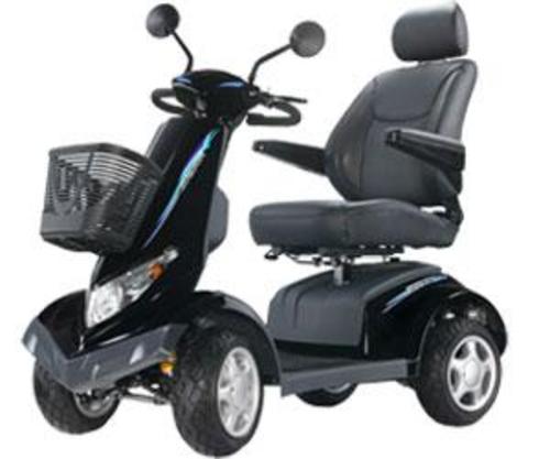 A four wheeled, rear wheel drive scooter with a large wheel base designed for use on rough terrain. Features full suspension, 4 pole motor finger controls, odometer, moulded seating and an off board battery charger. Can be customised in terms of speed settings. A range of accessories is available.Available in two models