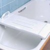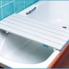Bath boards may assist people who have difficulty getting in and out of the bath safely. The board is placed between the edges of the bath, allowing the user to slide across into the bath without stepping over the ledge.