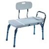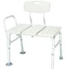 Bath transfer benches may assist people who have difficulty stepping in and out of the bath safely. The bench is placed over the tub, allowing the user to shuffle across into the bath. Benches with swivel or sliding seats are also available.