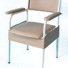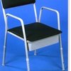 Chair commodes are typically placed near a bed for ease of toileting at night. The bedpan is concealed within the frame of the chair and is accessed by lifting up the seat.