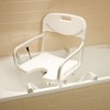 Bath seats attach to the floor or sides of a tub and allow a person to sit in the bath and wash themselves. The user must be able to step in and out of the bath safely, and have sufficient upper body strength to transfer on and off the seat.